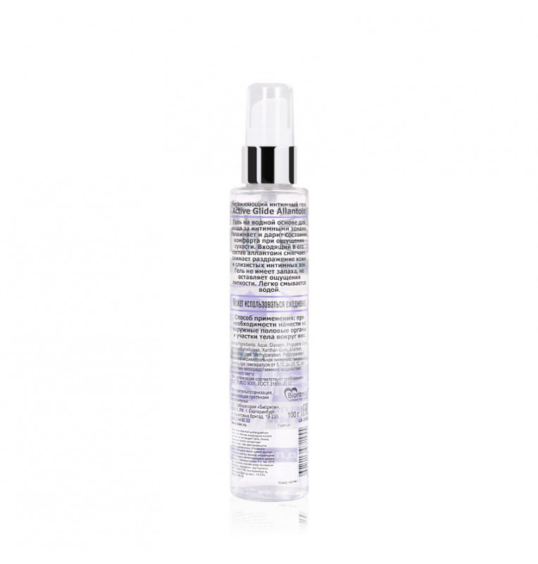 Прозрачный гель-лубрикант на водной основе Active Glide с аллантоином активно увлажняет слизистые половых органов, устраняет сухость влагалища, нормализует водный баланс, восполняет недостаток природной смазки, дарит комфортное длительное скольжение, снимает раздражение слизистых, способствует регенерации тканей, препятствует появлению микротравм. Входящий в его состав аллантоин обладает противовоспалительными и регенерирующими свойствами. Прекрасно смягчает и успокаивает раздражённую кожу и слизистую, помогает улучшить состояние и внешний вид половых органов. Аллантоин гипоаллергенен, поэтому может применяться даже для очень чувствительной кожи. Гель-лубрикант Active Glide с аллантоином обеспечивает бережный уход за интимными зонами женщин и мужчин. Не имеет цвета и запаха, легко смывается водой.