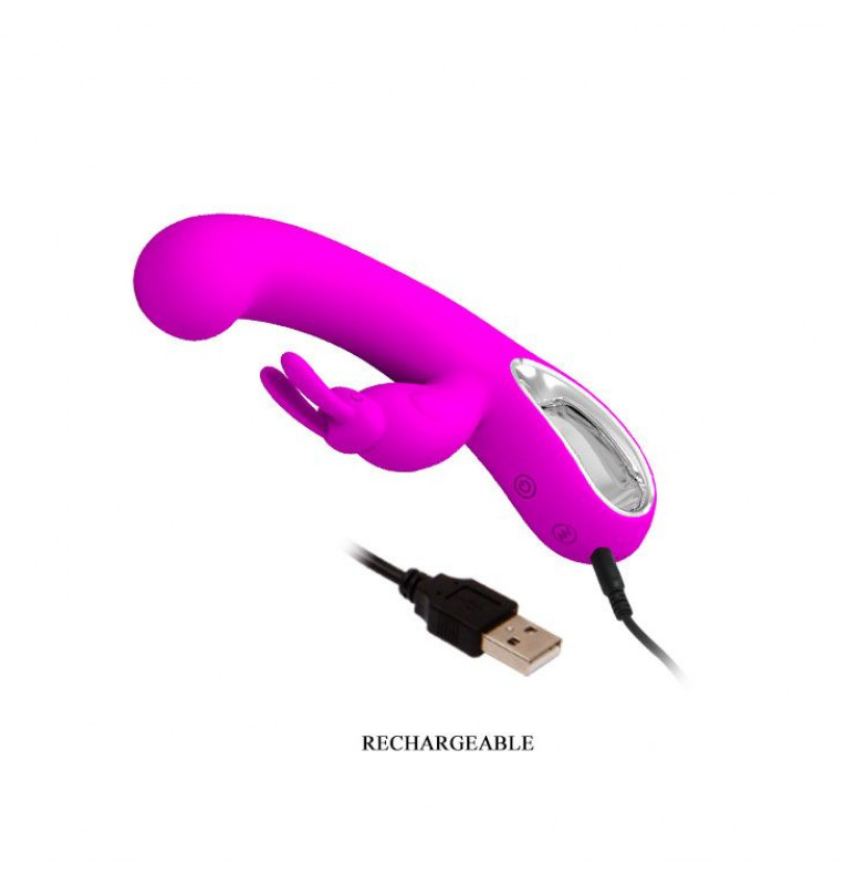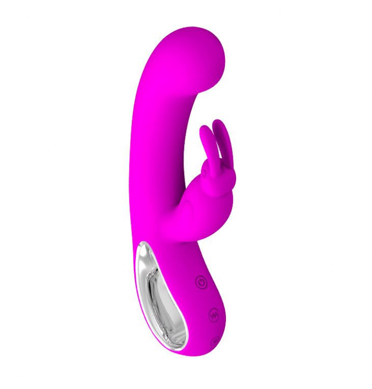 Силиконовый вибратор c клиторальным отростком в виде зайчика. Имеет 12 режимов вибрации и пульсации, лёгкое управление при помощи кнопок в основании. Имеет три моторчика. Рабочая длина - 12 см. Длина клиторального отростка - 8см., диаметр - 3 см. В комплекте: вибратор, зарядное устройство, мешочек для хранения.