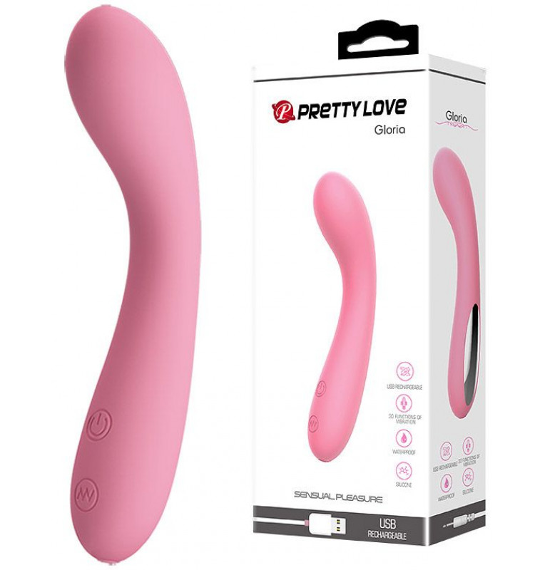 Нежно-розовый изогнутый вибратор Gloria - 16 см.
