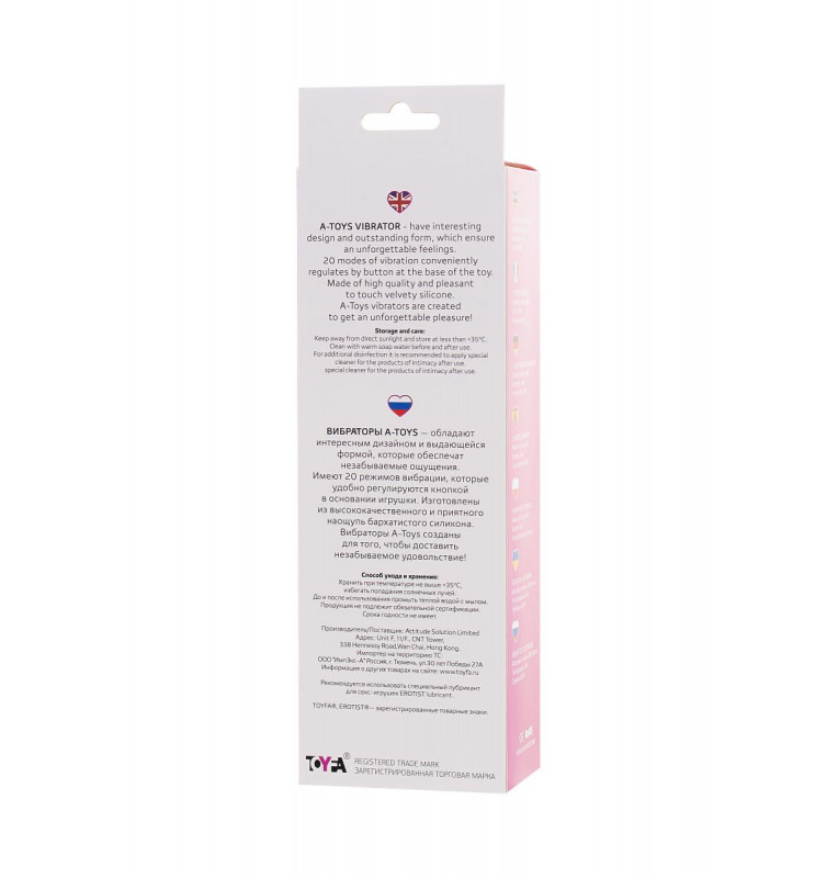 Вибратор A-Toys обладает интересным дизайном и выдающейся формой, которые обеспечат незабываемые ощущения. Имеет 20 режимов вибрации, которые удобно регулируются кнопкой в основании игрушки. Изготовлены из высококачественного и приятного на ощупь бархатистого силикона. Вибратор A-Toys создан для того, чтобы доставить незабываемое удовольствие! Рабочая длина - 14,5 см. Минимальный диаметр - 2,6 см.