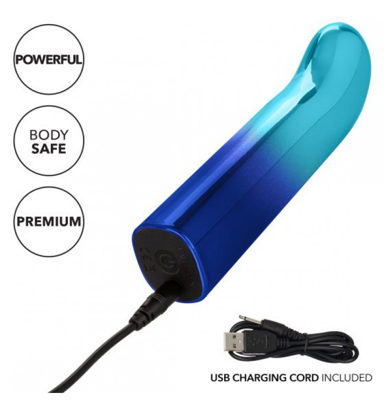 Голубой изогнутый мини-вибромассажер Glam G Vibe - 12 см.