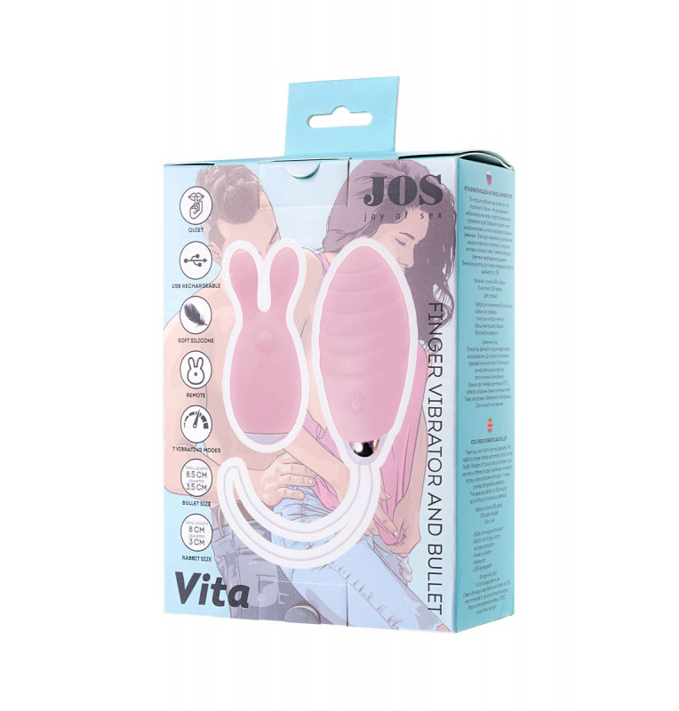 VITA – множество вариантов удовольствия для двоих! Эти игрушки работают как в паре, так и по отдельности. Зайчик – это одновременно вибронасадка на палец и пульт дистанционного управления пулей. Вибрацию игрушек можно синхронизировать, а можно наслаждаться разными режимами. Он сделает прелюдию дико возбуждающей: проведи мягкими силиконовыми ушками по шее, соскам, животу и внутренней стороне бедер. Подвижные ушки идеальны для обхватывающей стимуляции клитора и полового члена. Пульт работает на расстоянии до 8-и метров. Это позволяет вам играть друг с другом на расстоянии. Игрушки изготовлена из бархатистого силикона. VITA будет работать до 4 часов непрерывно. Не требует батареек и заряжается с помощью USB-провода (в комплекте). • Вибропуля для вагинальной стимуляции. • Зайчик для прелюдии, стимуляции клитора и пениса. • 7 режимов вибрации. • Бесшумная мощная вибрация. • Водонепроницаемость Длина вибропули без шнурка - 8,5 см. Длина вибронасадки - 8 см.