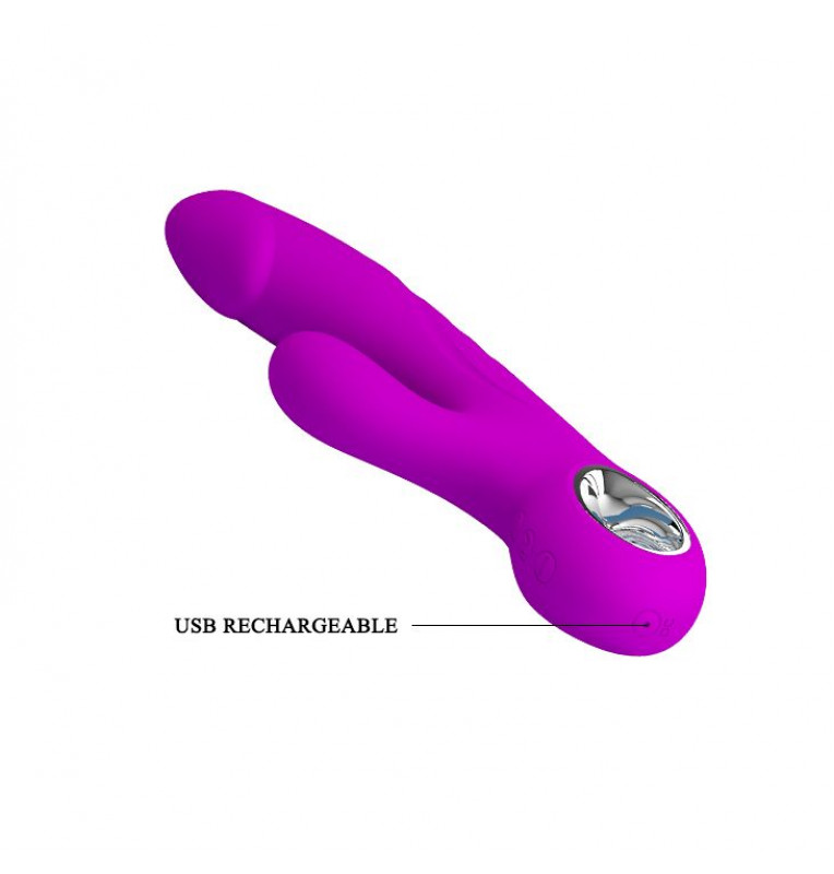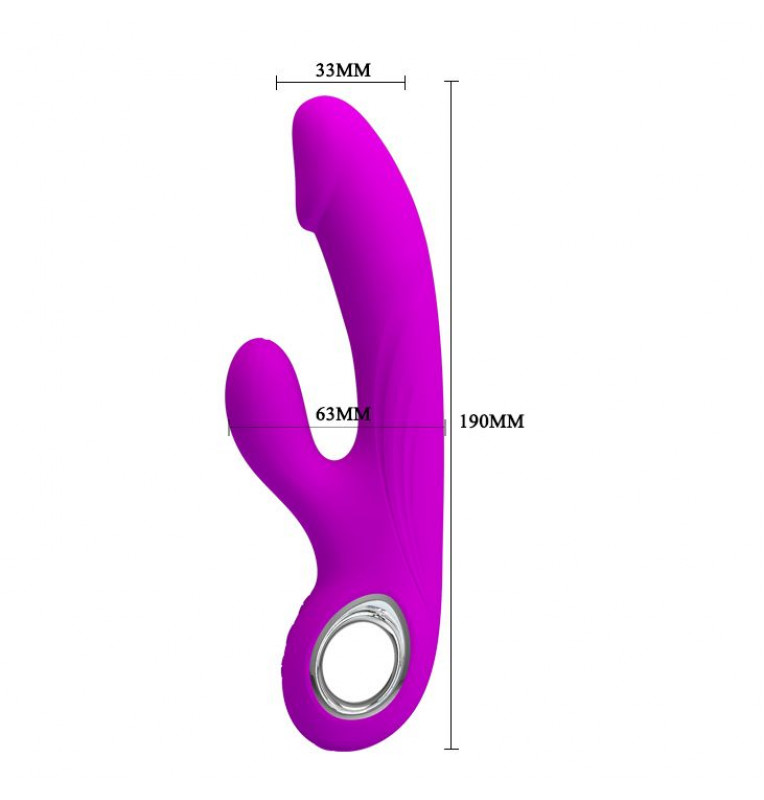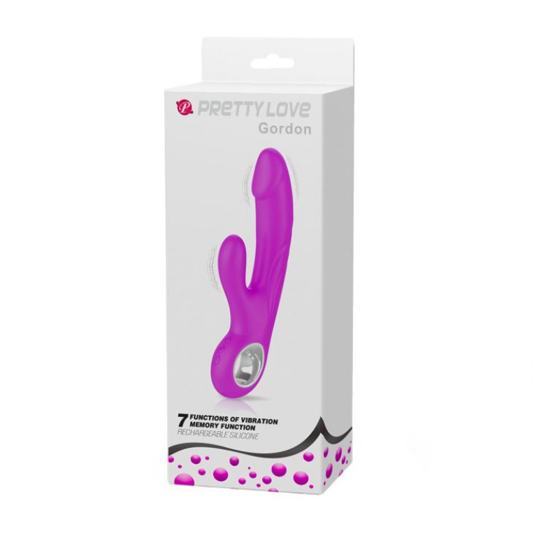 Лиловый вибратор с клиторальным отростком Gordon. 7 режимов вибрации. Функция памяти. Водонепроницаемый.