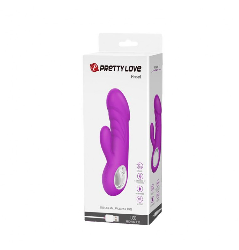 Лиловый вибратор с клиторальным отростком Ansel. 7 режимов вибрации. Водонепроницаемый.