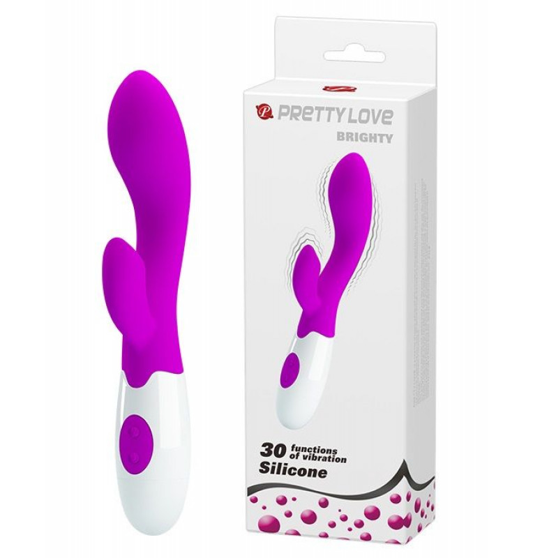 Лиловый силиконовый Brighty из коллекции Pretty Love от Baile имеет изогнутый ствол и крупную головку для интенсивной стимуляции точки G и дальних, самых влажных уголков вагины. Второй отросток предназначен для чувственного массажа клитора. Вибрации, производимые двумя моторами, распространяются по всему стволу и клиторальному стимулятору. Вибромассажёр имеет удобные кнопки переключения в основании. Всего 30 режимов вибрации на выбор - от мягкой пульсации до настойчивого трепета. Рабочая длина - 10,2 см.