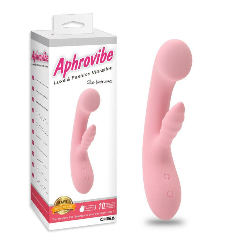 Нежно-розовый вибратор со стимулятором клитора The Unicorn - 21,5 см.