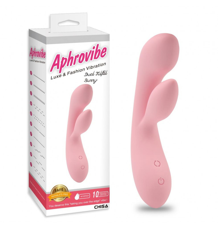 Нежно-розовый вибратор Dual Fulfill Bunny с клиторальным стимулятором - 20,5 см.