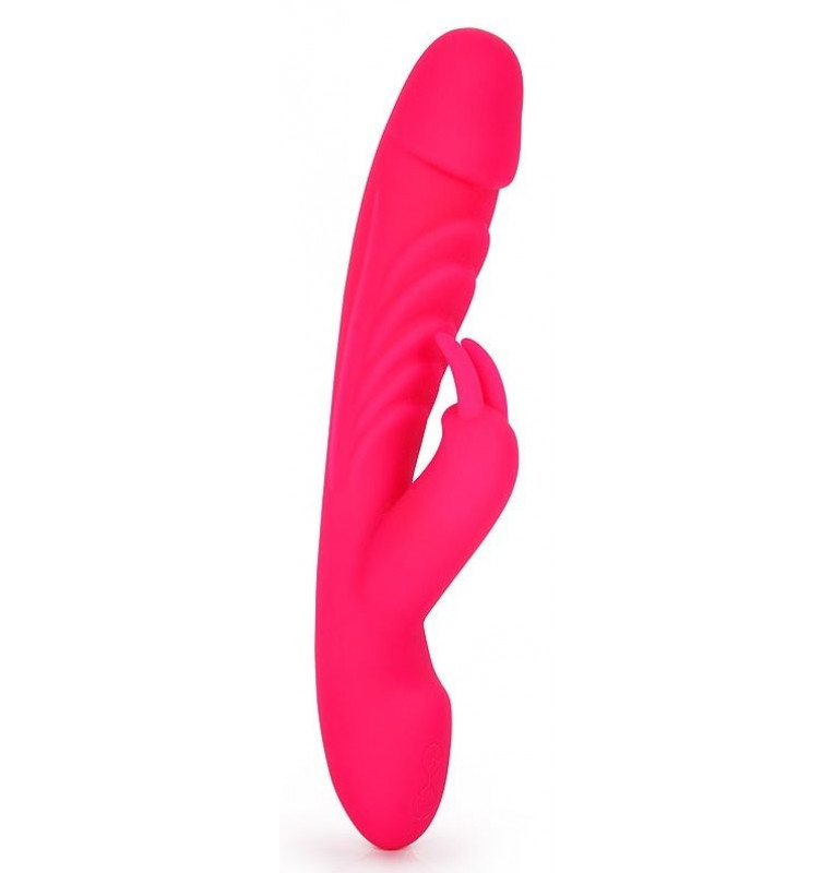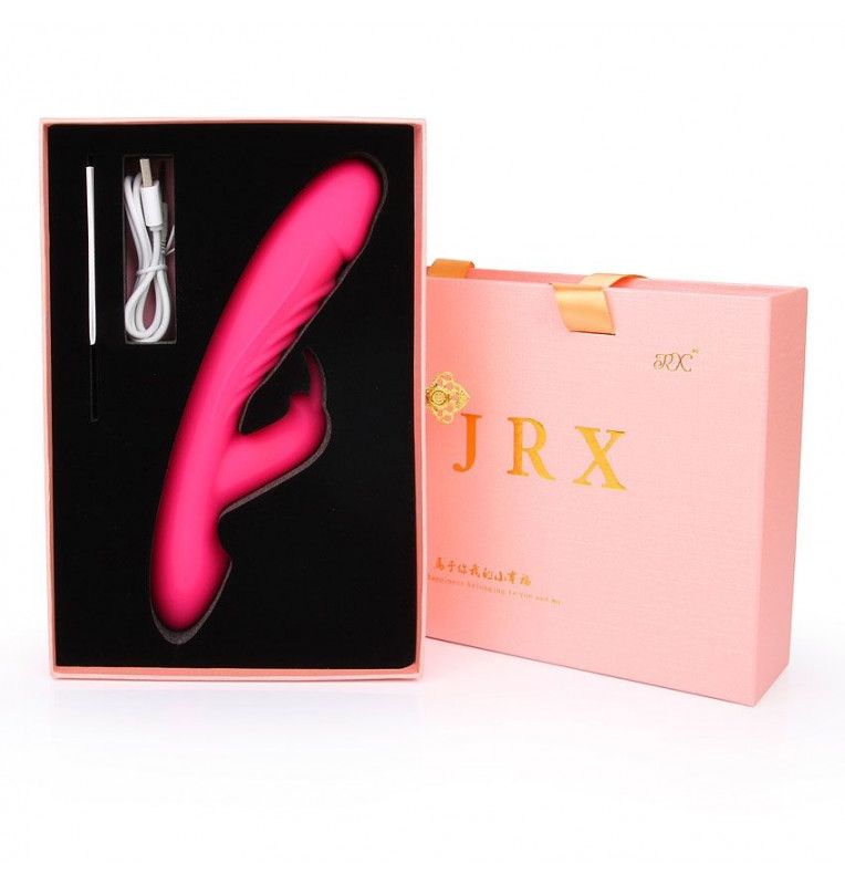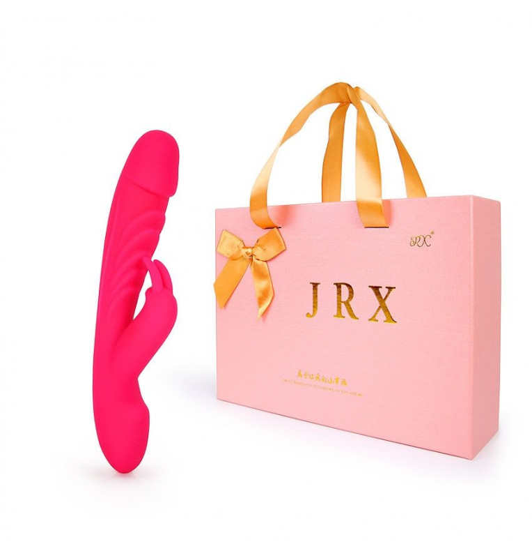 Ярко-розовый реалистичный вибратор-кролик JRX - 25 см.
