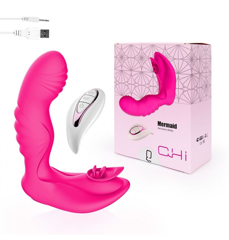 Ярко-розовый вибратор Mermaid с пультом ДУ