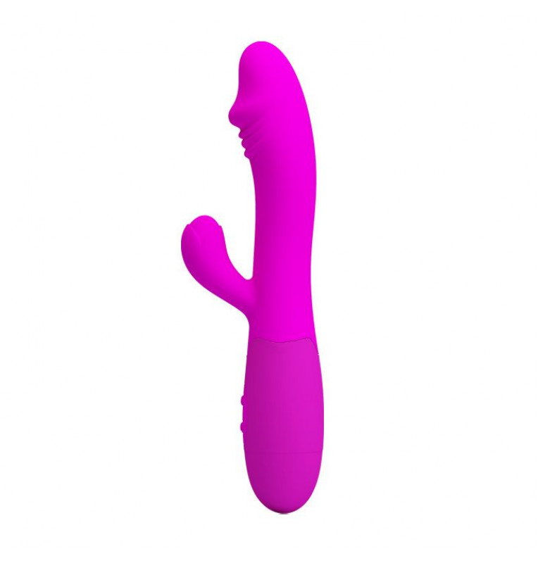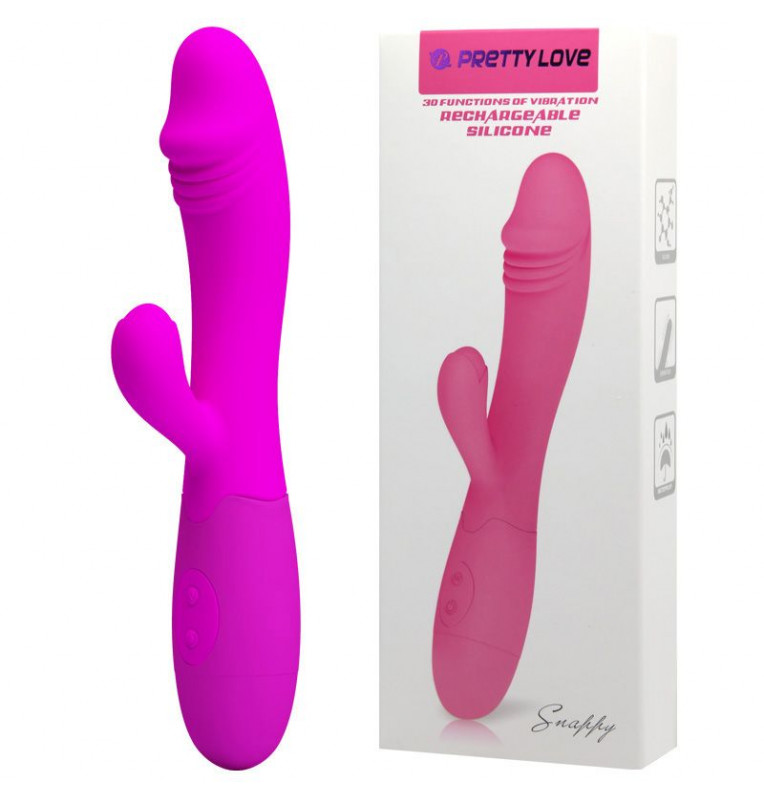Лиловый перезаряжаемый вибратор Snappy с клиторальным отростком. 30 функций вибрации. Рабочая длина - 9,5 см.
