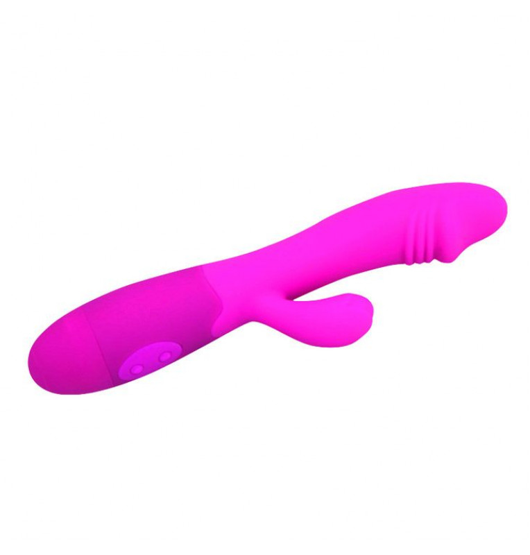 Лиловый перезаряжаемый вибратор Snappy с клиторальным отростком - 19,5 см.