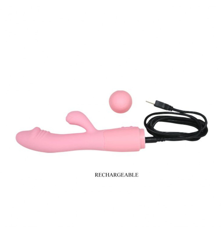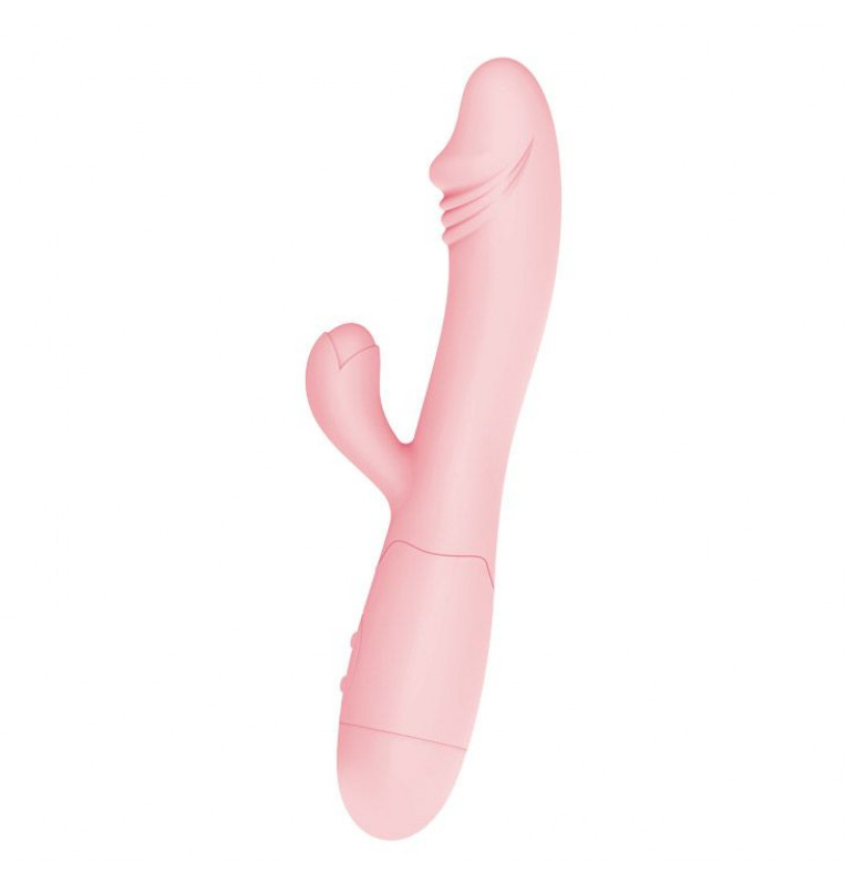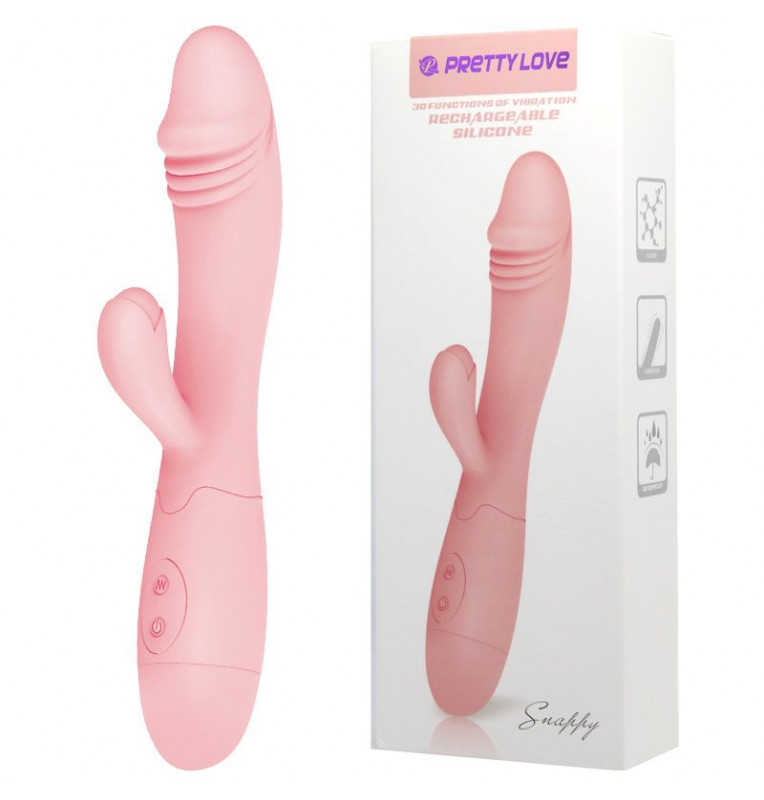 Нежно-розовый перезаряжаемый вибратор Snappy с клиторальным отростком. 30 функций вибрации. Рабочая длина - 9,5 см.
