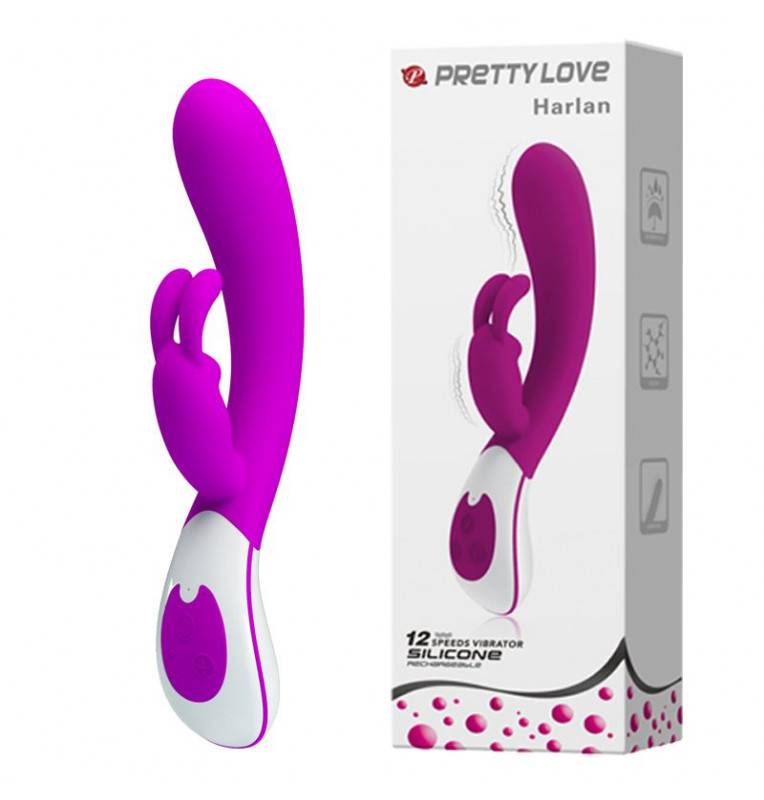 Перезаряжаемый вибратор Harlan с клиторальным стимулятором. 12 функций вибрации.