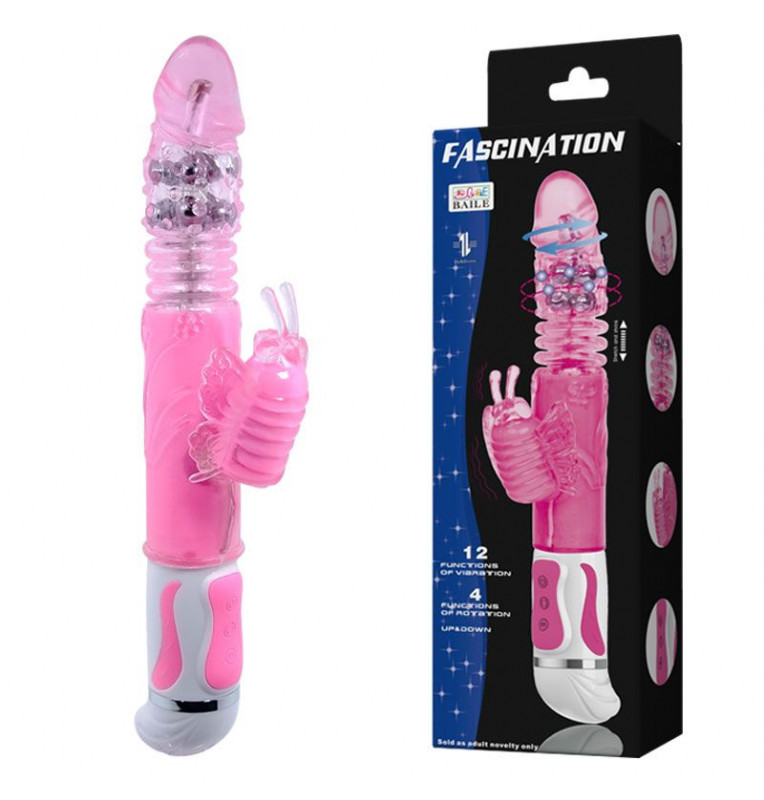 Розовый вибромассажер с режимом вращения ствола и мощным клиторальным стимулятором в виде бабочки. Имеет 12 режимов вибрации и 4 скорости ротации. Внутри ствола расположены жемчужный шарики. Мягкий, имеет не пористую структуру. Рабочая длина - 13 см.