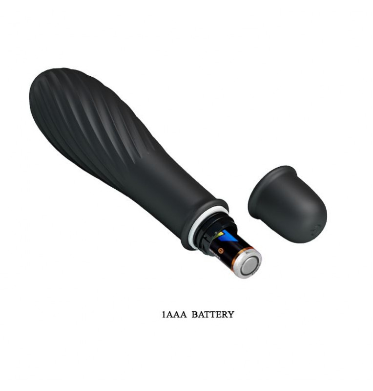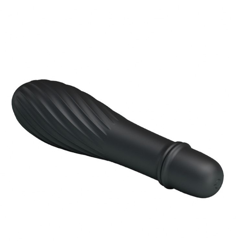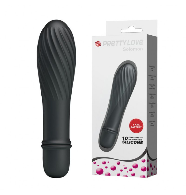 Чёрный вибратор Solomon с бороздками. 10 режимов вибрации.
