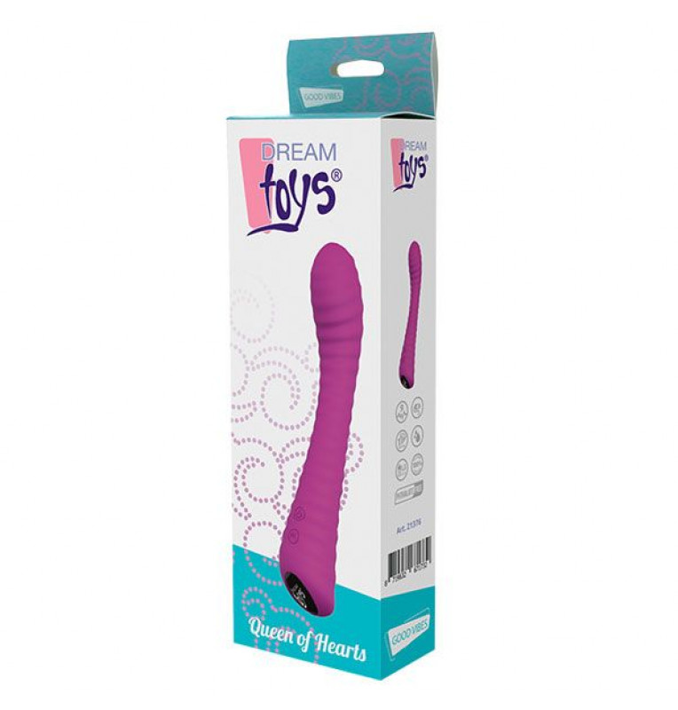 Фиолетовый перезаряжаемый вибратор с ребрышками QUEEN OF HEARTS. 1 мощный двигатель, который предлагает 9 моделей вибрации. Гибкий ребристый ствол. Полностью заряжена за 1,5 часа. Не содержит фталатов. Водонепроницаемый. Время зарядки - 1,5 часа. Время работы - 1 час.