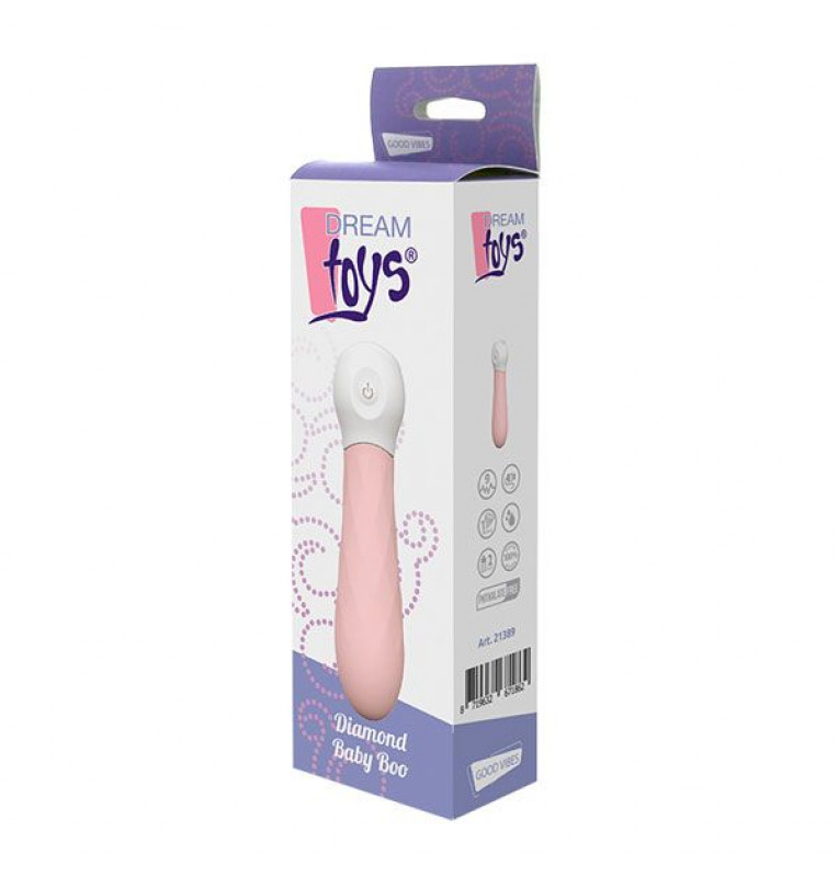 Diamond Baby Boo - небольшой свибромассажер-фаллоимитатор с мощными вибрациями и стимулирующей поверхностью в форме ромба. Имеет 9 режимов вибрации. Управляется одной кнопкой на игрушке. Скромный размер делает его идеальной игрушкой, чтобы поместиться в вашей сумочке и взять ее с собой куда угодно. Он водонепроницаемый и сделан из безопасного силикона. Не требует батареек и заряжается с помощью USB-провода (в комплекте). Рабочая длина - 8 см.