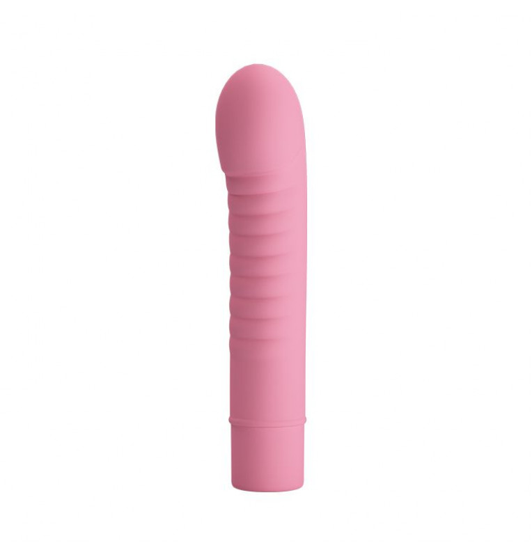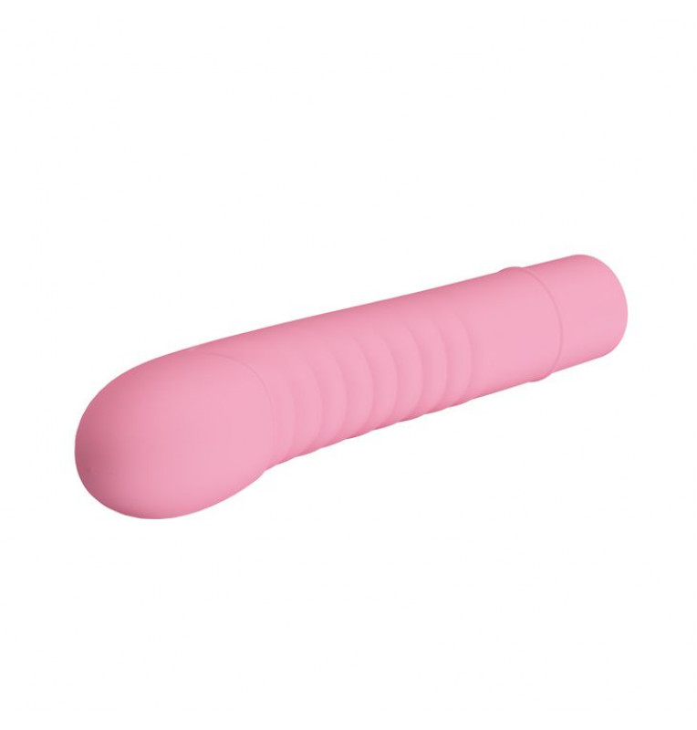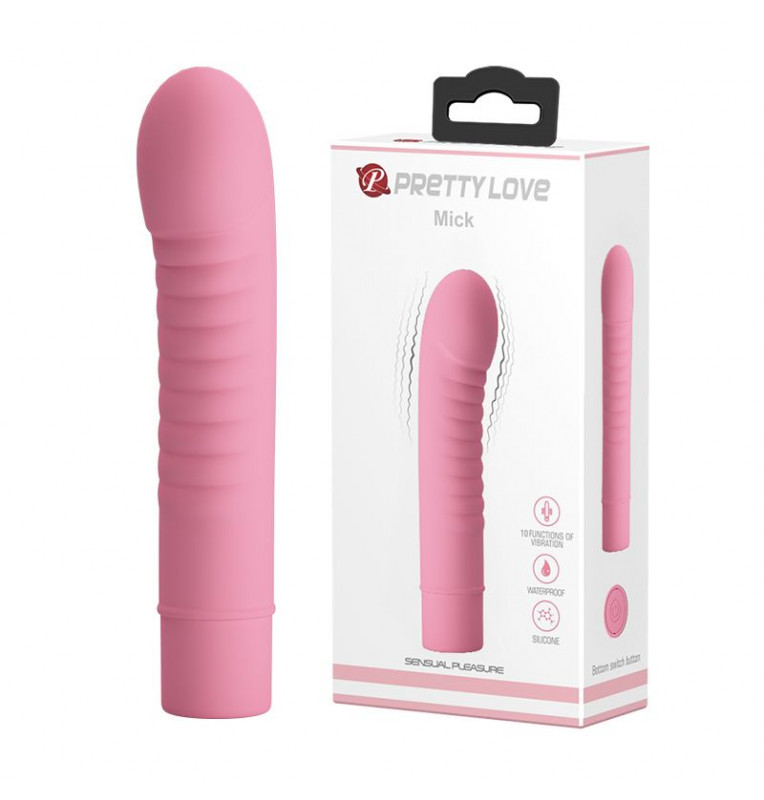 Нежно-розовый мини-вибратор Mick с ребрышками. Увеличенная головка. 10 режимов вибрации.