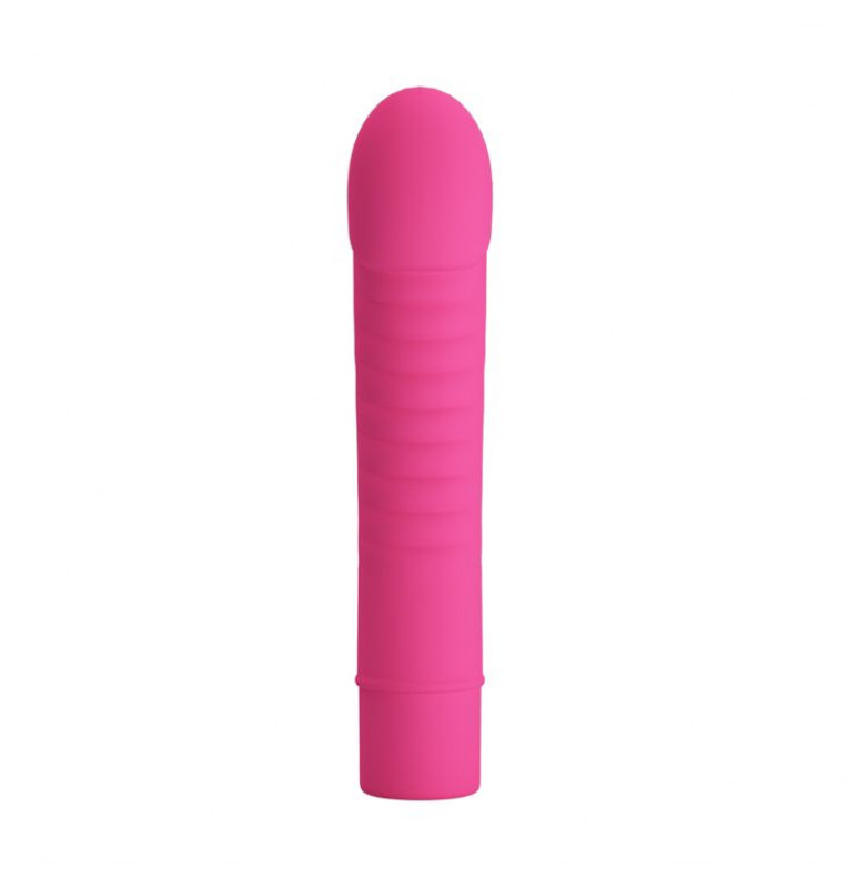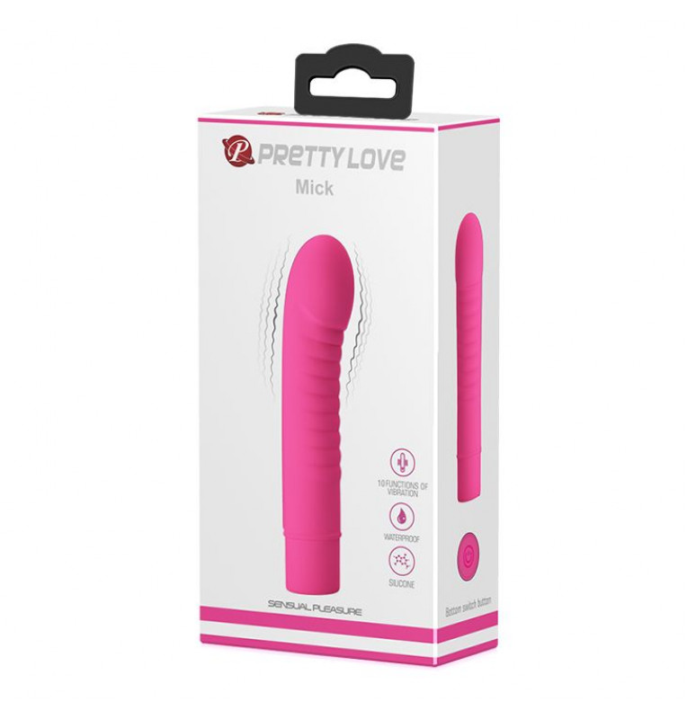 Розовый мини-вибратор Mick с ребрышками. Увеличенная головка. 10 режимов вибрации.