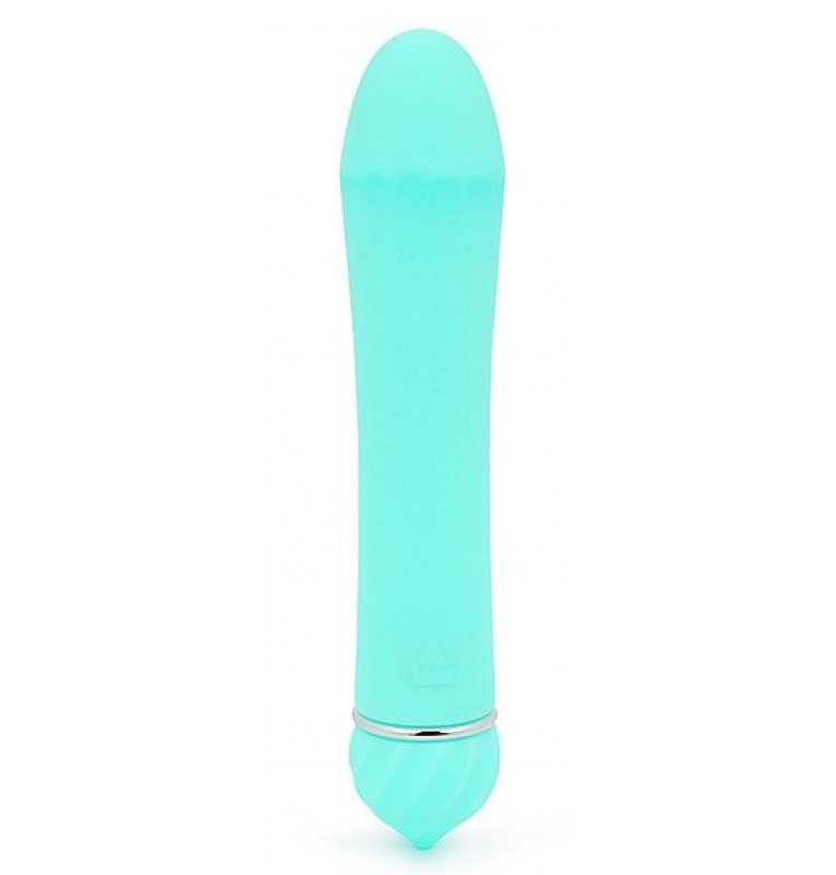 Бирюзовый гладкий вибратор с 11 режимами вибрации - 11,5 см.