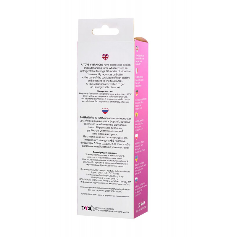 Вибраторы A-Toys обладают интересным дизайном и выдающейся формой, которые обеспечат незабываемые ощущения. Имеют 10 режимов вибрации удобно регулируются кнопкой в основании игрушки. Изготовлены из высококачественного и приятного на ощупь ABS-пластика. Вибраторы A-Toys созданы для того, чтобы доставить незабываемое удовольствие!