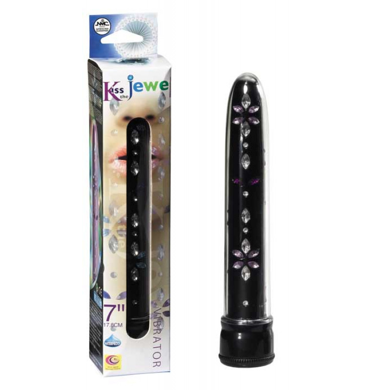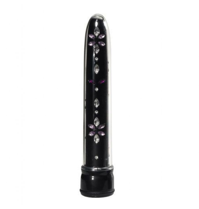Чёрный вибратор со стразами по всей длине.