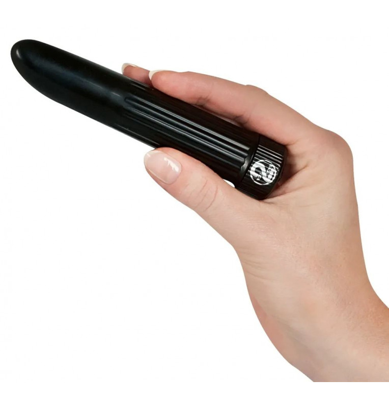 Черный гладкий вибратор с рельефным основанием и загнутым кончиком. С многоскоростной вибрацией. Нестареющая классика для плотских удовольствий. Благодаря гладкой поверхности вибратор с лёгкостью скользит по коже. Вибратор подходит для вагианльных проникновений и воздействия на эрогенные зоны (соски, клитор и пр.).