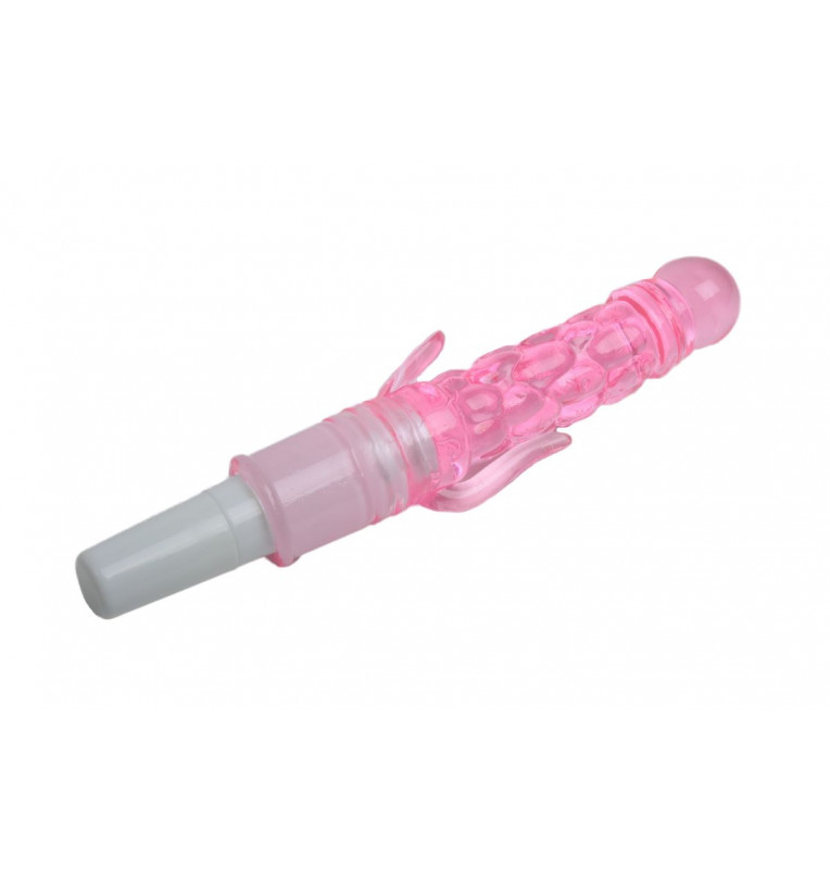 Вибратор розового цвета с двумя небольшими отростками. Изготовлен из TPR. Ребристая поверхность и ярко выраженная головка добавляют еще больше удовольствия. Имеет 1 скорость вибрации, которая удобно и плавно регулируются на ручке. Рабочая длина - 10 см.
