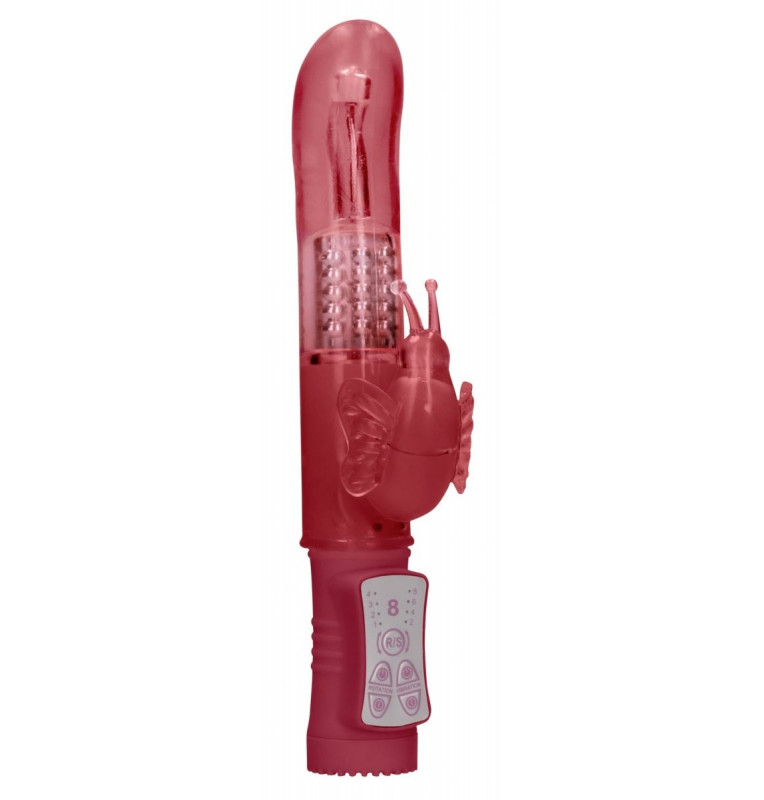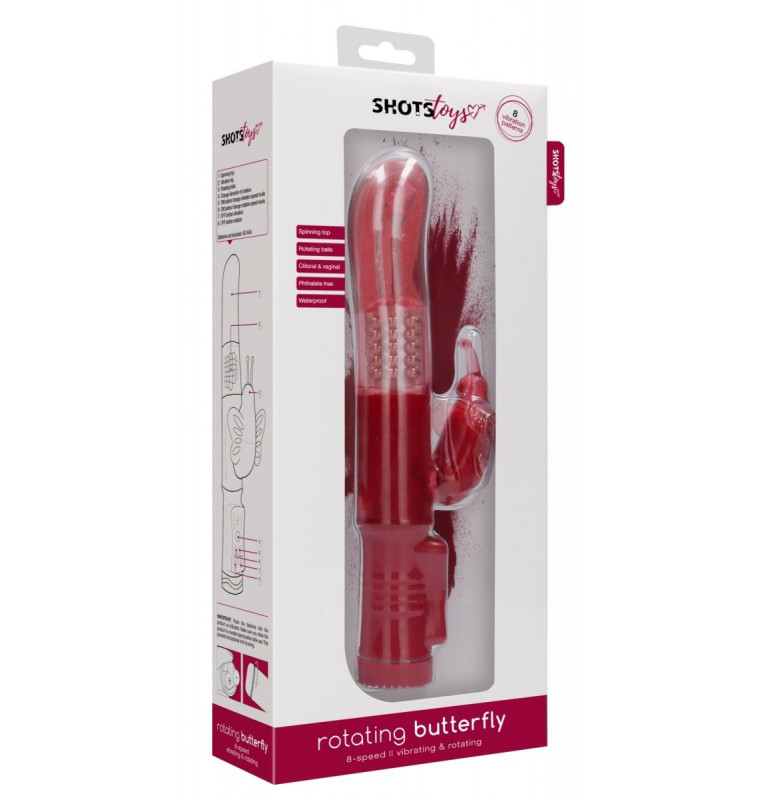 Вибратор кролик Rotating Butterfly. Вибромасссажер-кролик с функцией ротации. Два сверхмощных моторчика обеспечивают 8 уникальных функций вибрации, способных достигнуть скорости больше 15.500 оборотов в минуту, но при этом не очень громкие на уровне 50 дБ. Вагинальный отросток у этой модели имеет вращающиеся бусины и реалистичная головка для целенаправленной стимуляции. Клиторальный отросток имеет форму бабочки. Рабочая длина - 12,5 см.