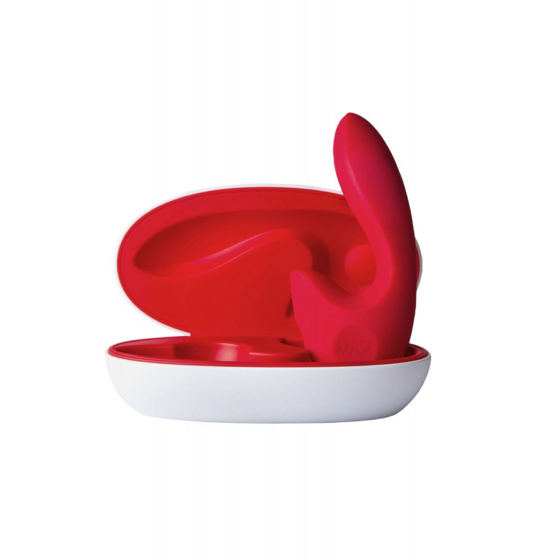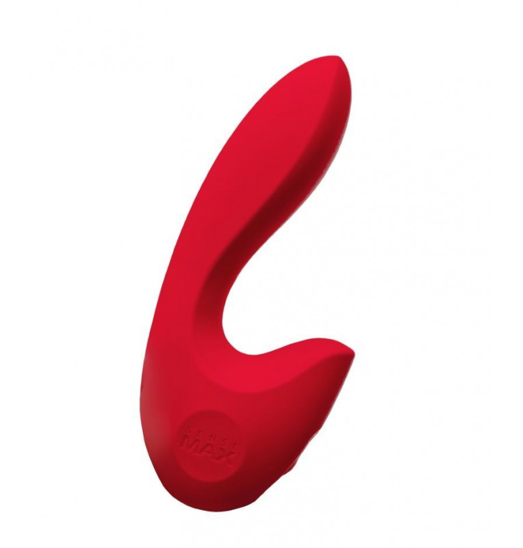 Красный вибратор Sense Max с клиторальным отростком - 16 см.