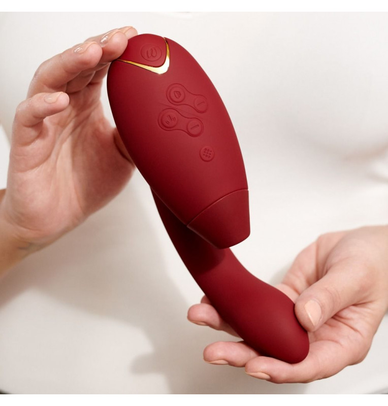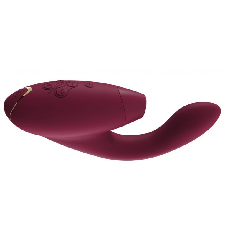 Бордовый стимулятор Womanizer DUO с вагинальным отростком