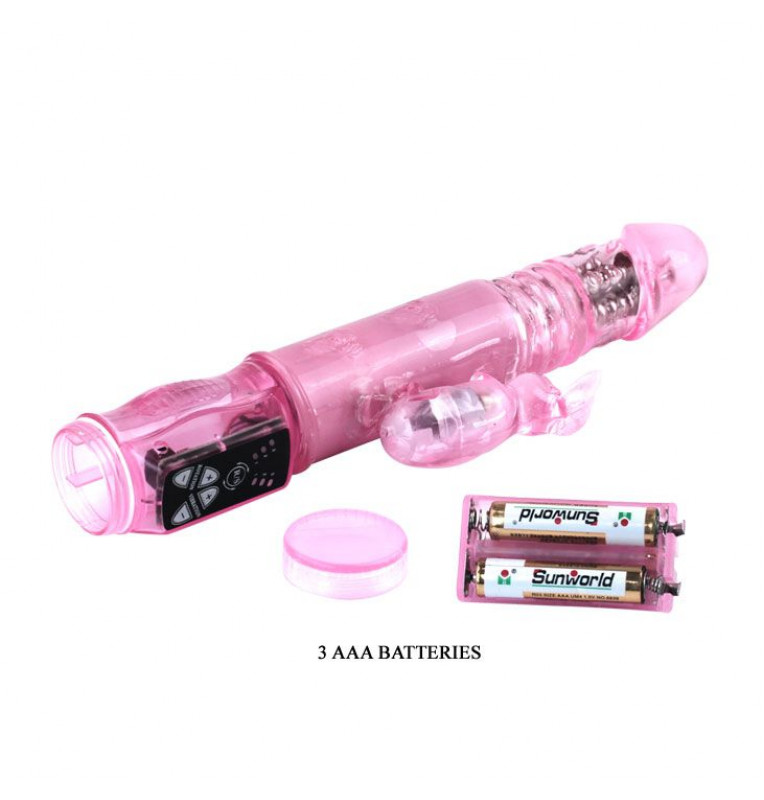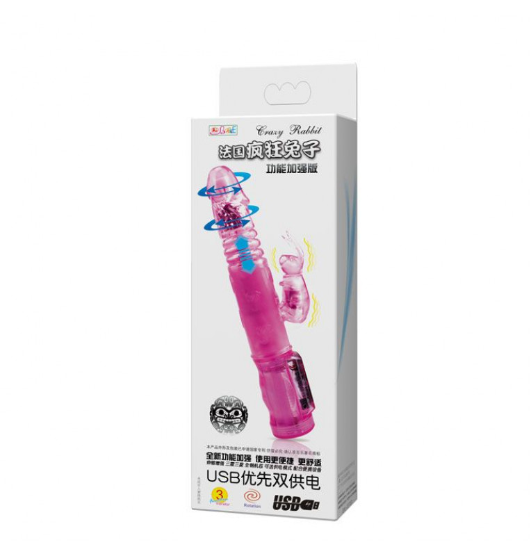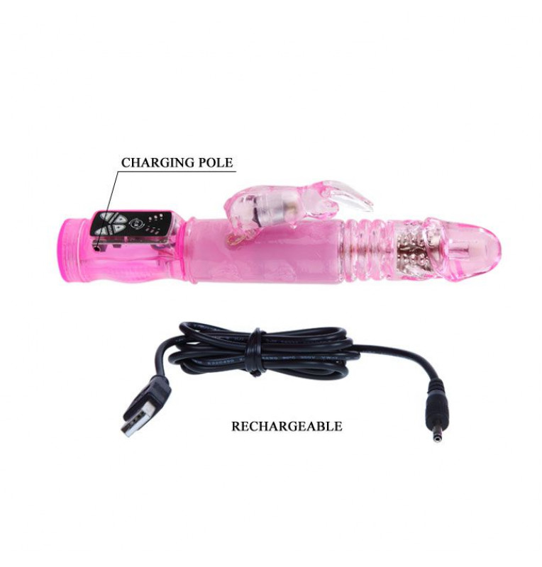Нежный гелевый вибратор розового цвета, имеет 3 уровня вибрации и пульсацию трех скоростей. Управление осуществляется при помощи панели управления в основании вибромассажера. Совершает возвратно-поступательные движения. Вибромассажер отличается оригинальным ребристым рельефом, который обеспечивает самую интенсивную стимуляцию интимных мышц. Забавный кролик, в форме которого выполнен клиторальный стимулятор, своими мягкими и эластичными ушками будет умело ласкать ваш клитор. Вибратор может как работать от батареек (3хААА, нет в комплекте), так и заряжаться от USB (провод в комплекте). Рабочая длина - 12,7 см. Длина клиторального отростка - 8 см.