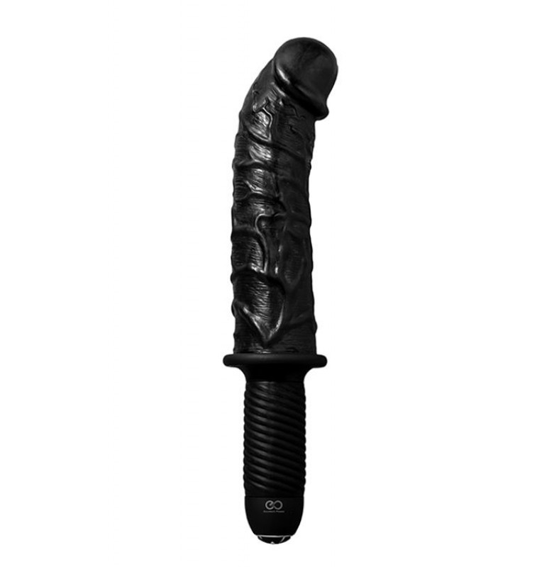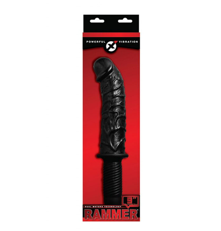 Черный вибратор-реалистик RAMMER с рукоятью. Ярко выраженный рельеф поверхности. Мощные моторы, гарантирующие 10 режимов вибрации и 4 интенсивности. Рабочая длина - 22 см.