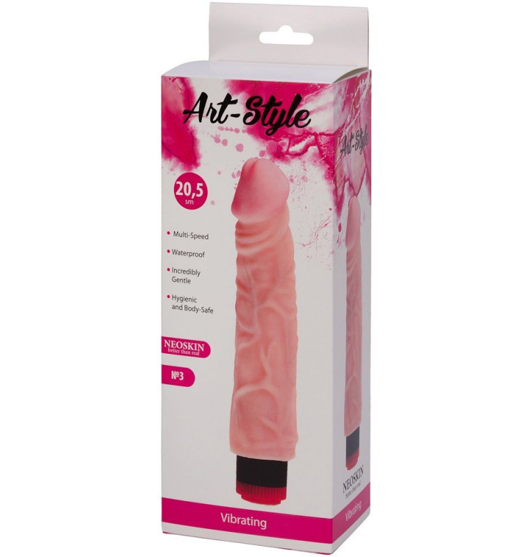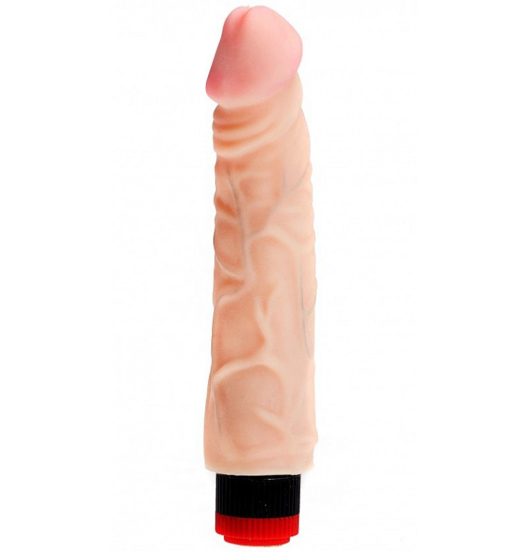 Вибромассажер выполнен из материала неоскин, качество которого гарантированно соответствует международным стандартам. Изделие имитирует мужской пенис с ярко выраженной головкой и рельефной поверхностью по всей длине ствола. Интим-аксессуар в таком исполнении – это отличное сочетание выгодной цены и высокого качества. Вибрацию можно легко регулировать с помощью плавных движений колесика, расположенного в основании игрушки. Рабочая длина - 20,5 см.