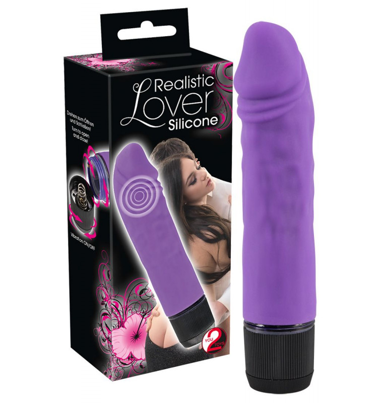 Фиолетовый вибратор-реалистик без мошонки. Бесступенчатая регулировка вибрации. Рабочая длина - 11,5 см.