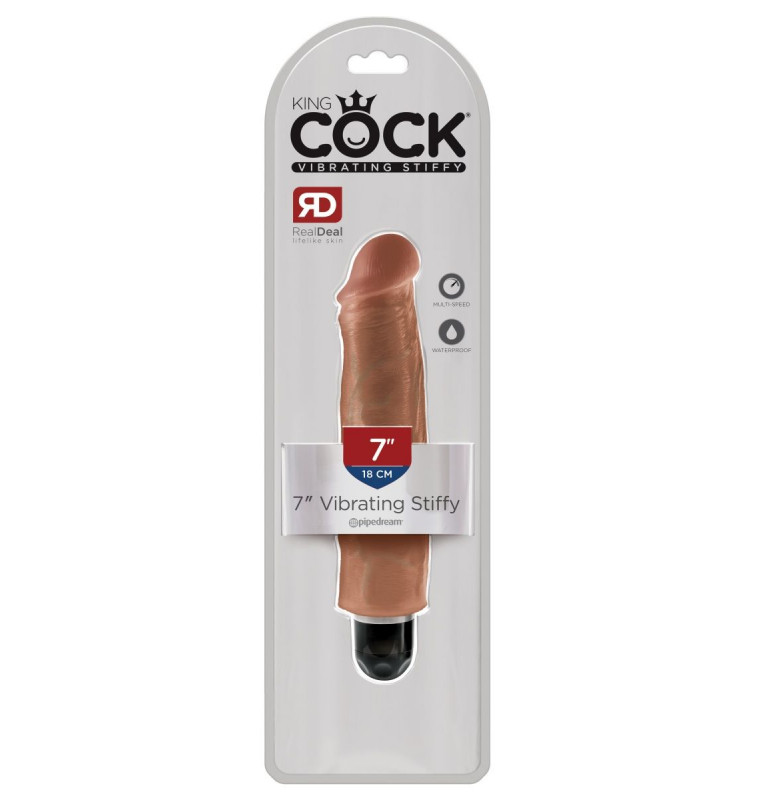 Вибратор-реалистик 7 Vibrating Stiffy выполнен из реалистичного на ощупь материала в кофейном цвете. Представляет собой дуэт классического вибратора с мультискоростной вибрацией, управляемой поворотом колёсика, и мягкой насадки с красивым рельефом поверхности. Ещё одно достоинство игрушки - водонепроницаемость пластикового корпуса, благодаря которой насладиться чувственными проникновениями можно и в душе. Рабочая длина - 17,8 см.