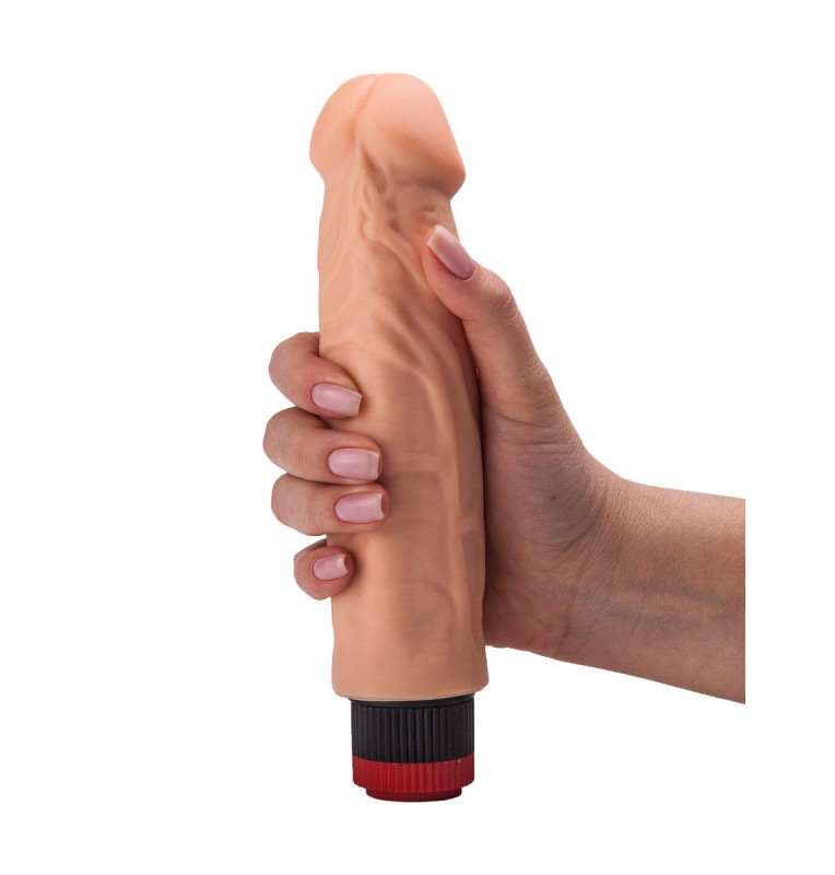 Когда тело просит ласки, этот реалистичный вибромассажёр подарит вам её сполна. Фаллическая игрушка – без мошонки, но с нежно-розовой головкой и пышными венами – гарантирует вам чувственные проникновения в лоно и не один десяток оргазмов. Мультискоростная вибрация, распространяемая по всему тельцу массажёра и управляемая при помощи колёсика в основании, усилит все приятные ощущения от сексуальных утех.