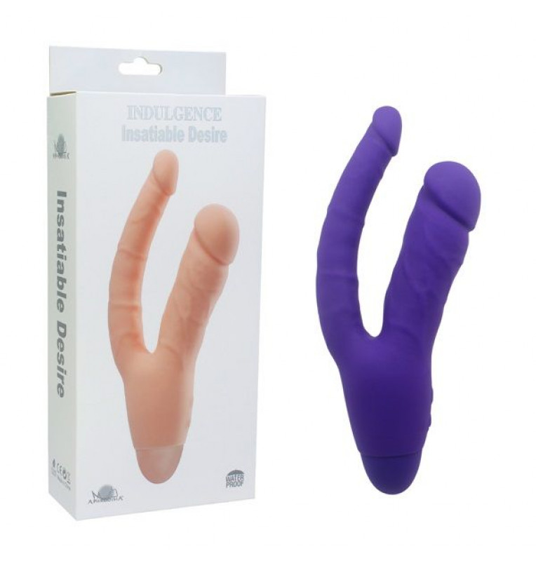 Фиолетовый двойной вибратор INDULGENCE Insatiable Desire - 21,5 см.