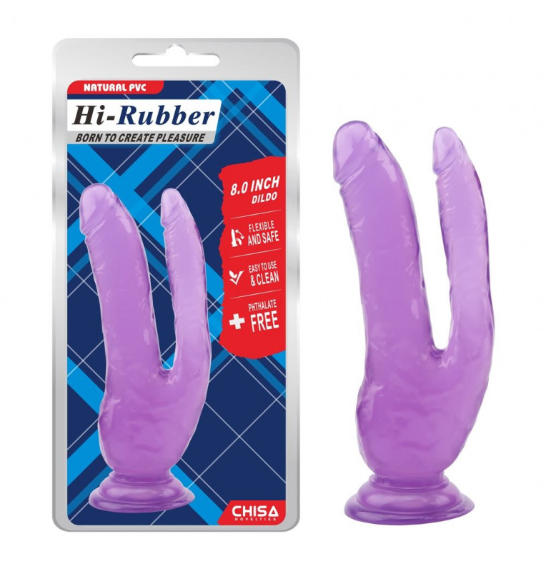 Фиолетовый анально-вагинальный фаллоимитатор - 20 см.