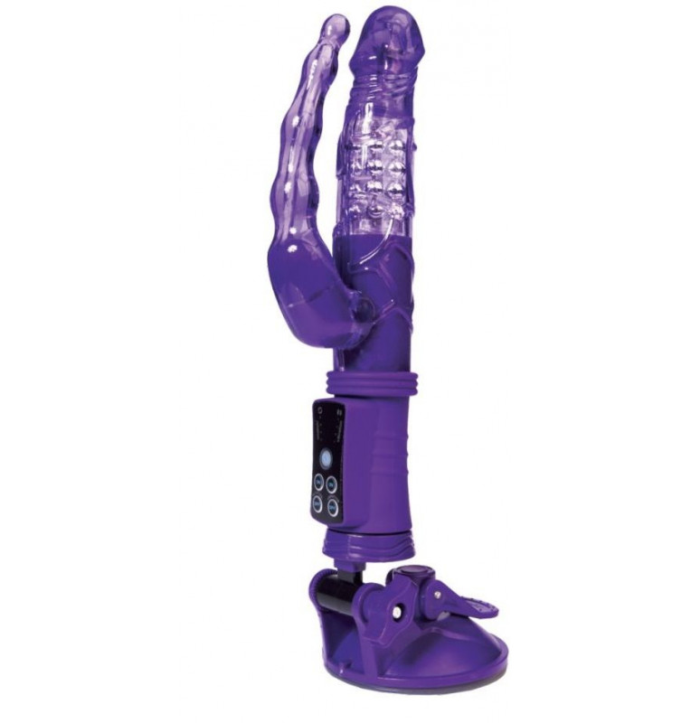 Фиолетовый анально-вагинальный вибратор на присоске A-toys