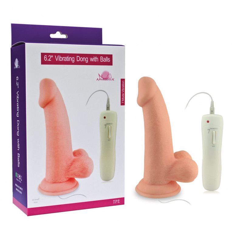 Телесный вибратор Vibrating Dong with Balls - 14 см.
