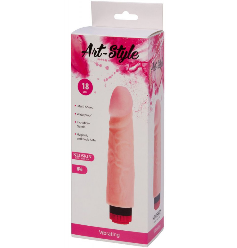 Телесный вибратор ART-Style №6 с реалистичным рельефом - 20 см.
