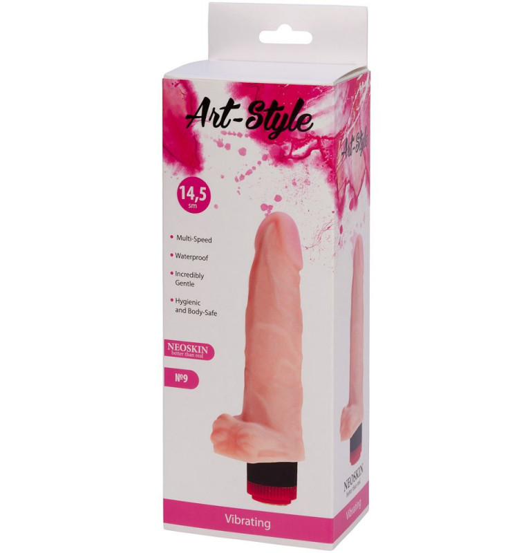 Телесный вибратор ART-Style №9 с поджатой мошонкой - 18,5 см.