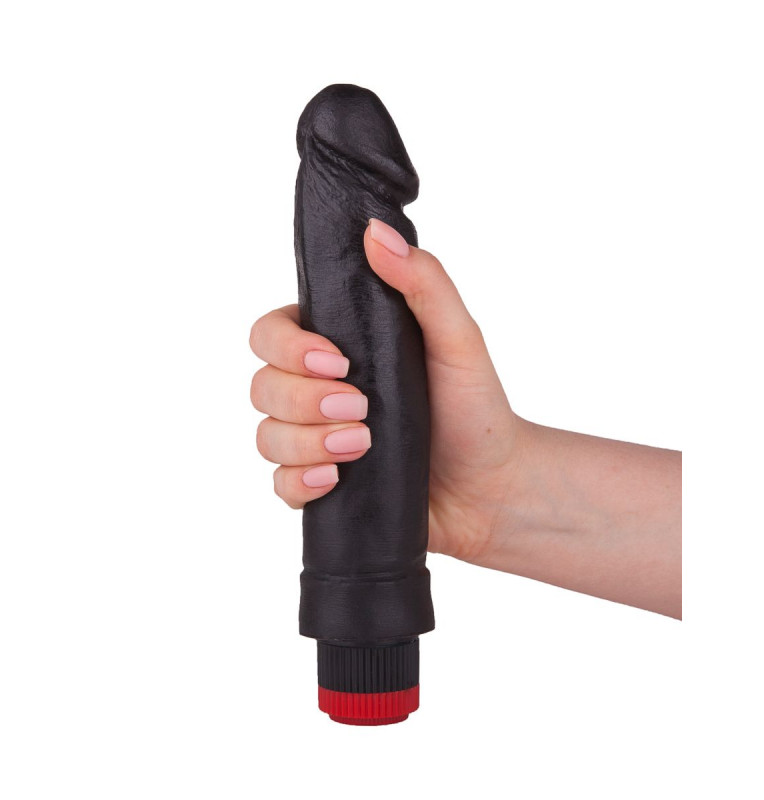 Чёрный, как ночь. Мощно вибрирующий – так, словно внутри него скрыт тот самый «пламенный мотор». Большой, а в области головки даже пышный… Сколько можно описывать, лучше попробовать! Крупный вибратор из гипоаллергенного материала подарит вам незабываемые ласки. Откройтесь ему навстречу, чтобы получить по-настоящему мощный оргазм!