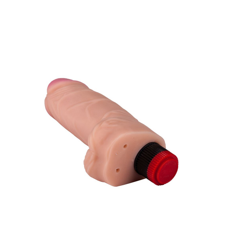 Вибромассажёр телесного цвета. Имеет форму члена с мошонкой и ярко выраженной головкой. Необычайно приятный, рельефный, выполненный из «киберкожи», передающей эффект мягкой реалистичной текстуры кожи, не имеет швов. Виброэлемент расположен ближе к головке для максимальной стимуляции. Степень вибрации регулируется при помощи кнопки, расположенной в основании. Рабочая длина - 14 см. Диаметр головки - 5,6 см.