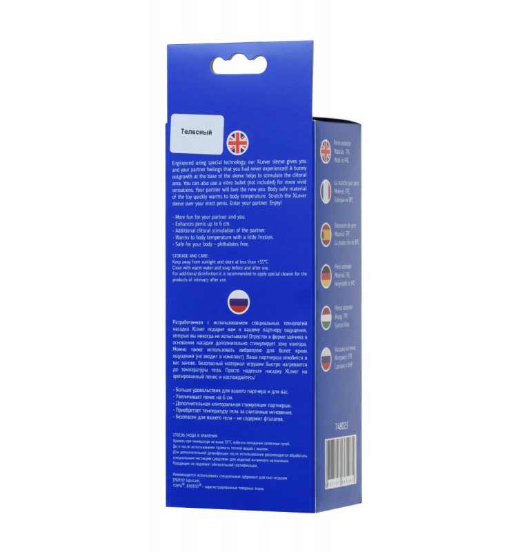 Разработанная с использованием специальных технологий насадка XLover подарит вам и вашему партнеру ощущения, которых вы никогда не испытывали! Отросток в форме зайчика в основании насадки дополнительно стимулирует зону клитора. Можно также использовать вибропулю для более ярких ощущений (не входит в комплект). Ваша партнерша влюбится в вас заново. Безопасный материал игрушки быстро нагревается до температуры тела. Просто наденьте насадку XLover на эрегированный пенис и наслаждайтесь! Больше удовольствия для вашего партнера и для вас. Увеличивает пенис на 6 см. Дополнительная клиторальная стимуляция партнерши. Приобретает температуру тела за считанные мгновения. Безопасен для вашего тела - не содержит фталатов. Длина дополнительного стимулятора - 5,5 см.