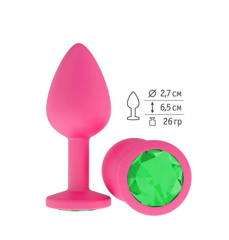 Розовая анальная втулка с зеленым кристаллом - 7,3 см.