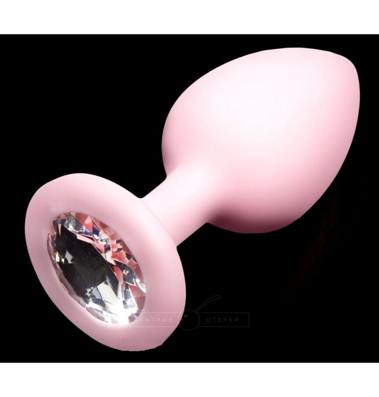 Нежно-розовая силиконовая пробка с прозрачным кристаллом - 7,5 см.