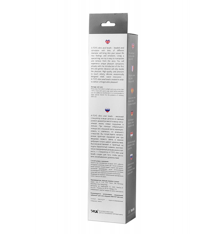 A-toys vibro anal beads - анальный стимулятор в виде цепочки из звеньев разного диаметра внесет в вашу сексуальную жизнь новые ощущения и эмоции. При помощи специального кольца секс-игрушкой легко манипулировать и извлекать из анального отверстия. Вы почувствуете неповторимые приятные ощущения уже при введении первого звена, а нежная вибрация только удвоит удовольствие. Высококачественный и приятный на ощупь бархатистый силикон, анатомически продуманный рельеф, водостойкость — стимулятор A-toys vibro anal beads создан для того, чтобы доставить незабываемое удовольствие! Рабочая длина - 23,3 см. Минимальный диаметр - 1,9 см.