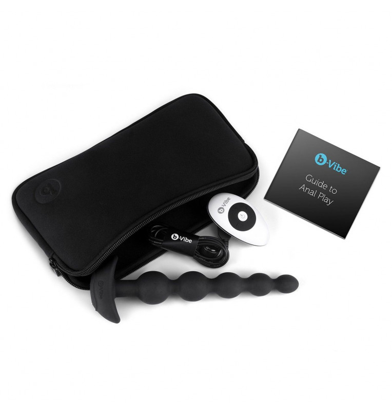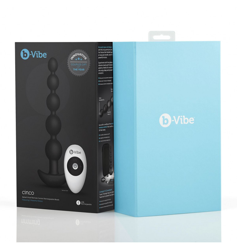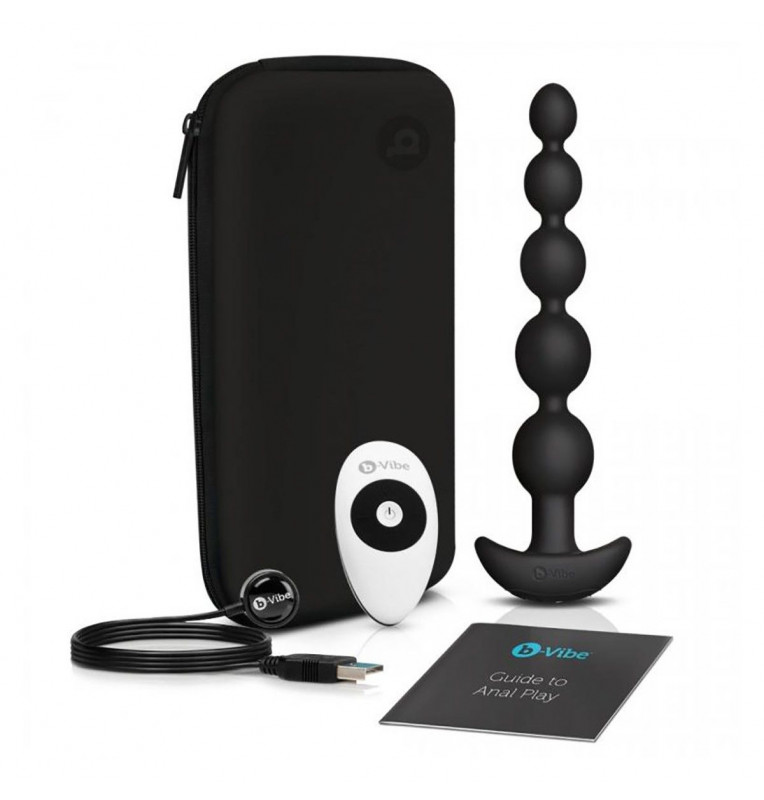 Черные анальные бусы с 3 моторами B-Vibe Cinco Anal Beads - 20,5 см.
